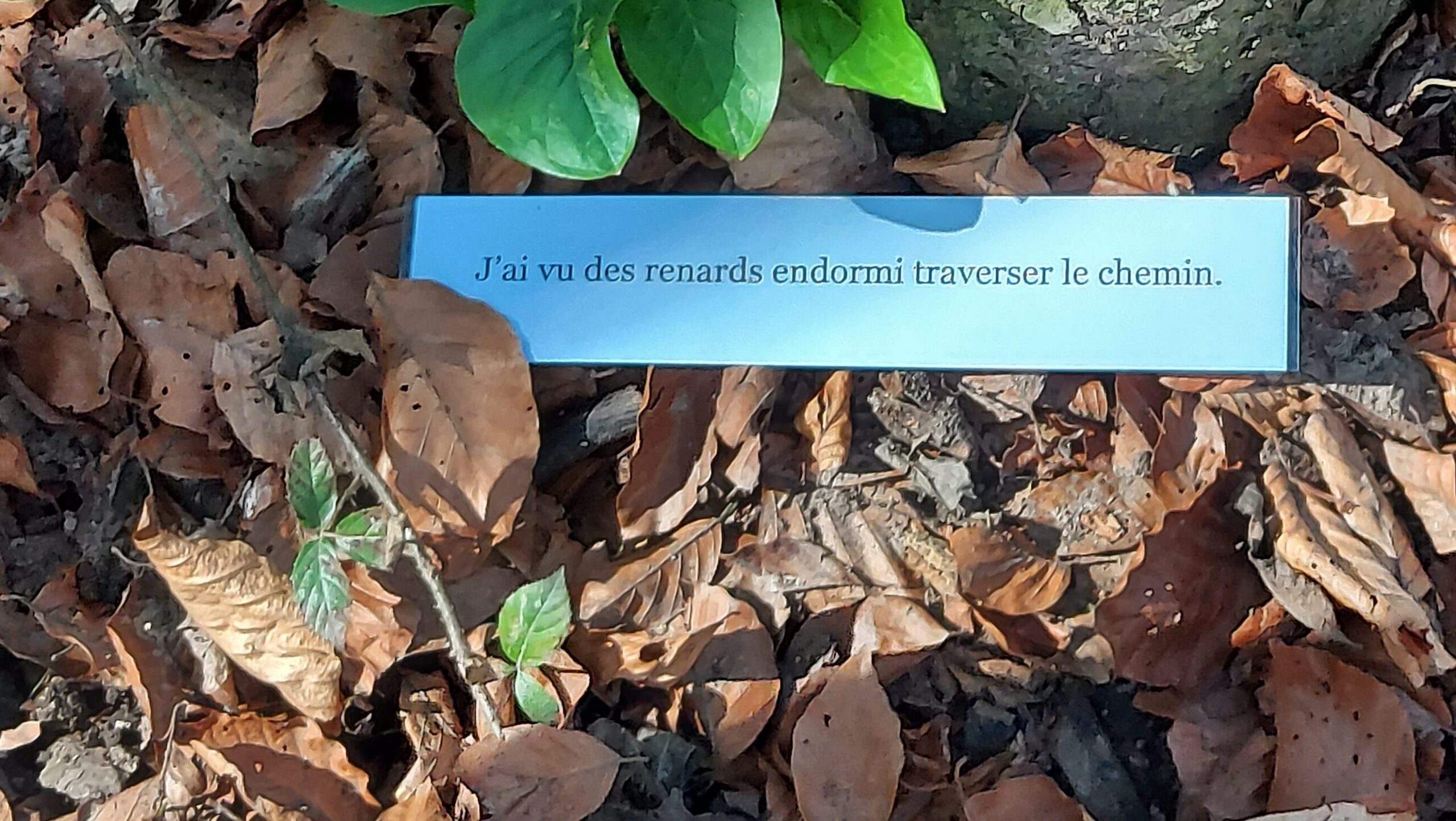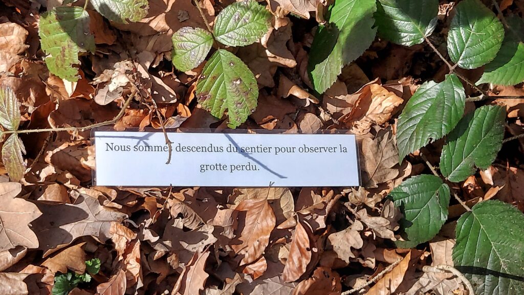 Les élèves se lancent à toute vitesse à la rechercher des 14 phrases disséminées dans la nature. Après un certain temps, plus au moins rapide, ils réalisent que pour réussir ils doivent collaborer ! En partageant leurs indices, ils parviennent plus facilement à retrouver et à corriger les phrases.