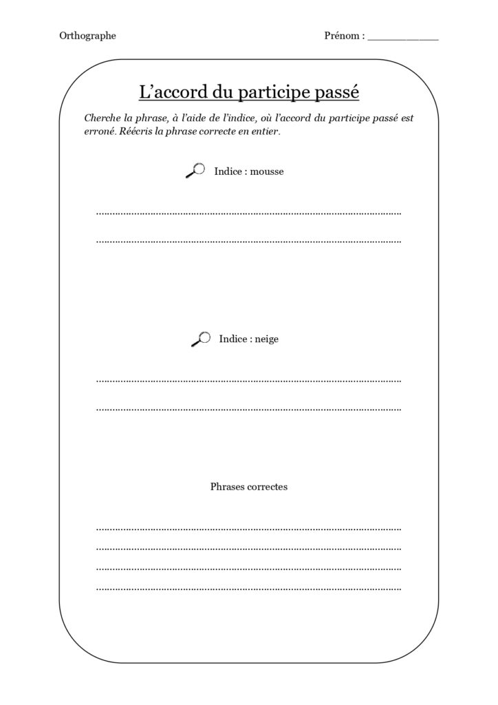 Lorsqu’un élève retrouve une phrase, il doit la réécrire correctement en respectant l’accord du participe passé.