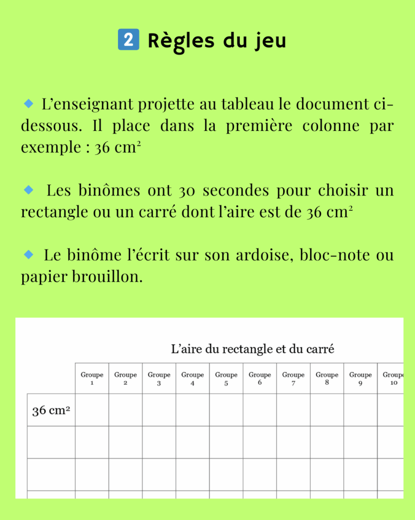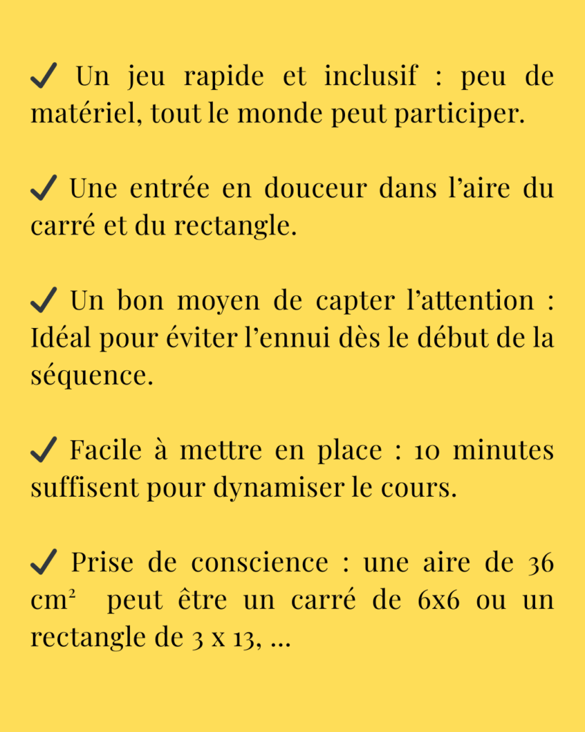 Aujourd’hui, je vous propose une activité d’introduction de séquence dans la thématique Grandeurs et Mesures : « Même aire ! ». L’idée est simple et va permettre à vos élèves d’entrer de manière ludique dans le thème de l’aire du carré et du rectangle.