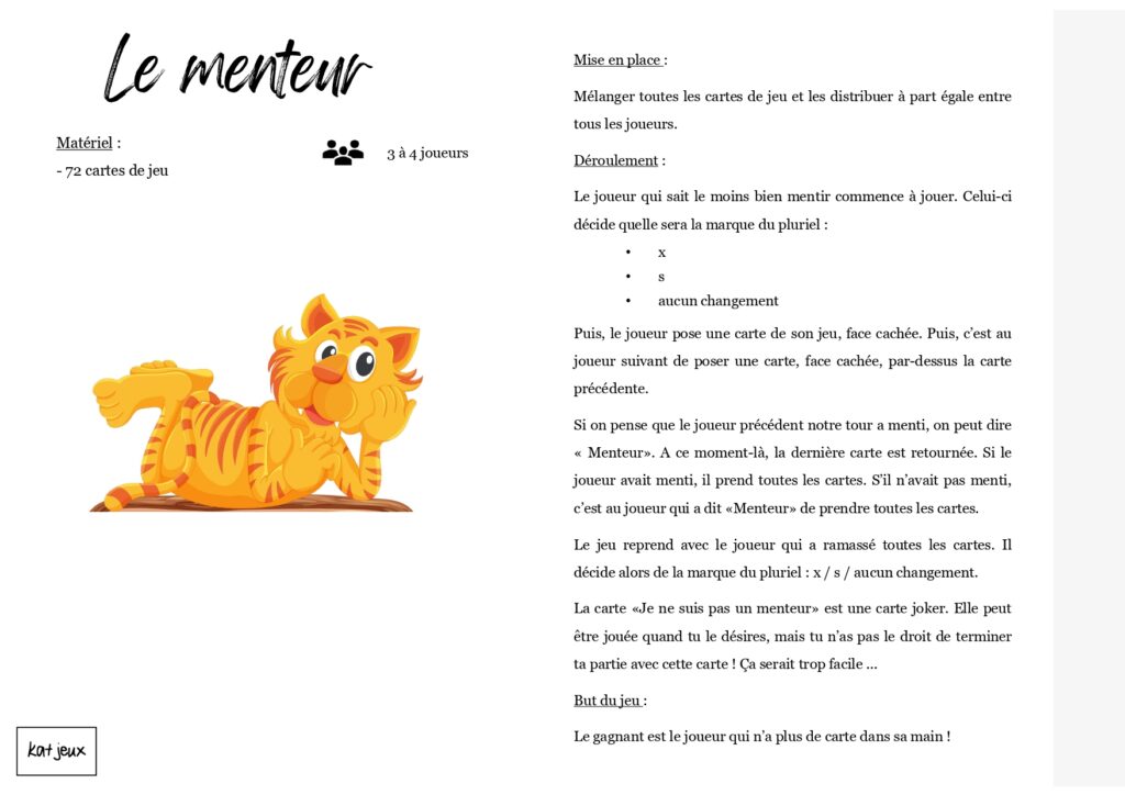 Menteur ! Quel enseignant n’a pas galéré pour apprendre le pluriel des noms à ses élèves. Ce jeu est magique… Lorsqu’un joueur est signalé comme menteur, tout s’accélère. Et on entend dans la classe :